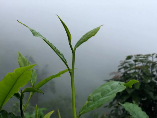 我听罢,为此感到惋惜。老段随即指着云雾缭漫的对山,教我们辨认深绿中段略显青绿部分的古茶园。他边指边说:“对山长有很多密密麻麻的几百年古茶树,但是今天这种天气状况,上对山去看古树茶已不可能。”