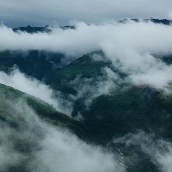 我们离开官寨,雨水前来送行,行云轻拂高树,牵连着流雾,铺开一幅幅山水画卷。