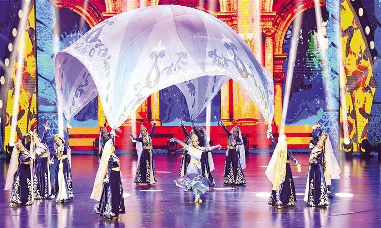 2019年8月23日晚,由中国文联和内蒙古自治区人民政府联合主办的第11届中国国际民间艺术节在呼和浩特市开幕。来自世界五大洲13个国家的600余位艺术家为观众联袂奉献了一场视觉盛宴,图为乌兹别克斯坦艺术家在表演舞蹈。