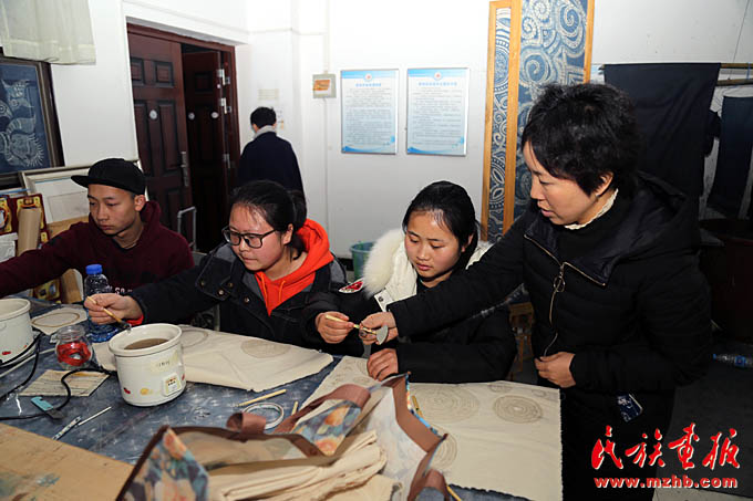 吴安丽老师在凯里学院艺术学院蜡染实训室指导学生