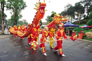 在南宁市园博园内,舞龙等活动吸引了不少市民参与。 娜小呆摄