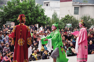 一场北路壮剧表演就是壮乡群众的文化大餐。