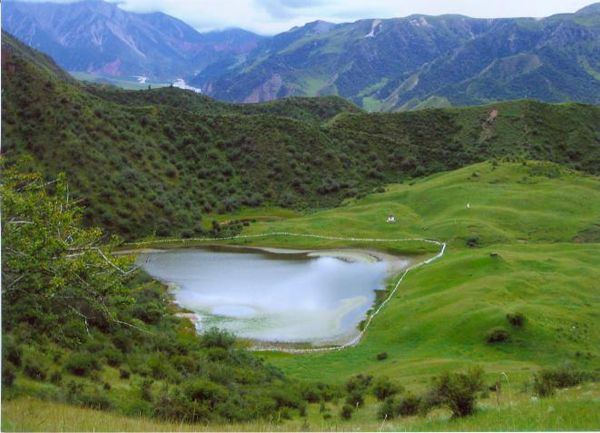龙王池距县城60公里。在常牧乡都秀村东侧的龙池山中,有一椭圆形的水池,当地人叫龙王池,相传湫池有灵,是龙王爷居住之地,虔诚地祈祷天上就会下雨。贵德旧志稿中写道:“龙池山在治南百里,山高险绝,去天尺五。下有湫池,周三十余丈,其深莫测,吐纳云雾,翠柏夹岸,白水澄澈。自山下望之,似常有仙人跨鹤翱翔其上。”古人的夸张描述使龙王池的波光水影披上了一层神秘的光芒。