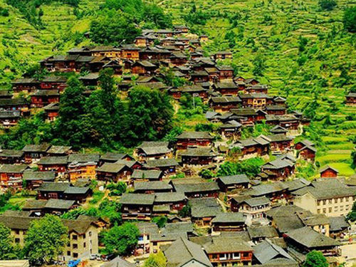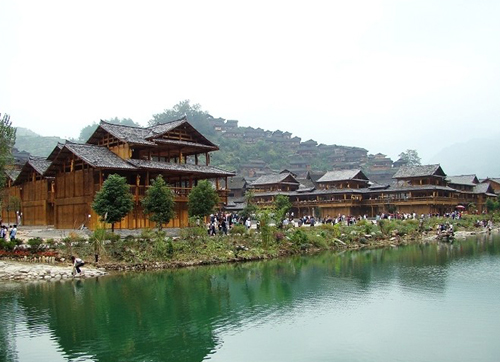 黔东南的苗族,都是聚集几十以至几百户成寨,独户或几户人家成寨的很少,100—200户成寨的较普遍,也有400—500户以上的,村寨周围或寨后、村头,多护一座山林为风水林,并在其中选定一株古树为神树,定期由各户醵资购备家畜家禽祭祀。清水江、潕阳河两岸和海拔较低地区,每寨都修有土地祠,土地菩萨共三尊,均男性,有的村寨砍刺编篱围寨一周,村口修有寨门,上覆瓦,安装坚固大门板,每个较大寨子或附近几寨,都在村中寨旁留一块空地为芦笙堂、铜鼓或木鼓堂,以作节日举行芦笙舞或铜鼓、木鼓舞之用,场地属集体所有,不许侵占。黔东南州和黔南州苗族住房多位于山脚、山腰,如地势陡峻,多依山建筑为“吊脚楼”,“吊脚楼”有全吊脚和半吊脚两种,一般是三开间,少数为五开间,住在河边、山谷和地势较为平坦的,多建平房和楼房,有少数“干阑式”楼房。操川黔滇方言的苗族,居住较分散,每个村寨住户也不多,一般只是几户至几十户成寨,超过百户的很少多是聚族而居。铜仁地区的苗族,苗寨大者百余户,超过200户的很少,多是瓦房,一般为三开间。黔西北苗族的住房有木瓦房、土墙房、草房、“杈杈房”等。
