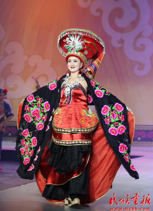 楚雄彝族姑娘在台上展示彝族服装