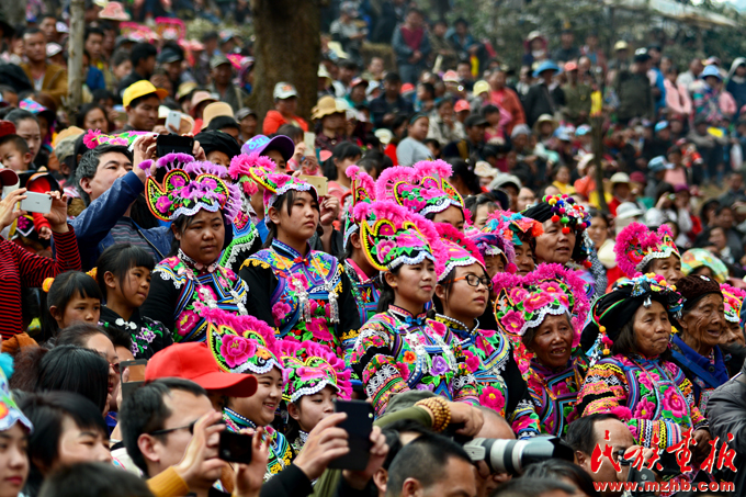 在楚雄彝族自治州当地举办的赛装节上,身着盛装的彝族群众