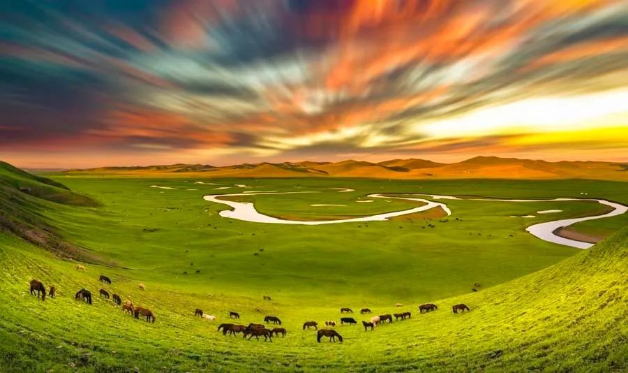 这里是呼伦贝尔最佳的天然牧场之一,由于莫日格勒河是沙石河底,所以河水格外清澈,每到水草丰美的季节,茫茫大草原上茵茵的牧草,弯弯曲曲的河水,成群的牛羊,构成了绝美画廊。