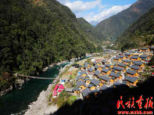 昔日光秃的巴坡今天已变成了新农村新村,图中的房屋都是政府免费为独龙族的半个世纪:生产生活方式