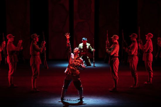 作为一部革命历史题材话剧,《人间正道是沧桑》用艺术手段展示了多个革命与战争场景,燃点不断。首演第二幕尾声,由王劲松饰演的共产党员瞿恩英勇就义,象征革命英雄鲜血的红色光芒浸染了舞台。面对此情此景,不少观众流下了激动的泪水。