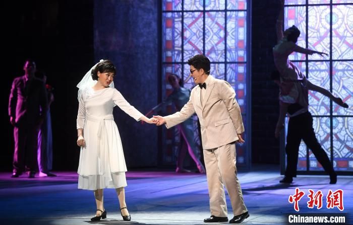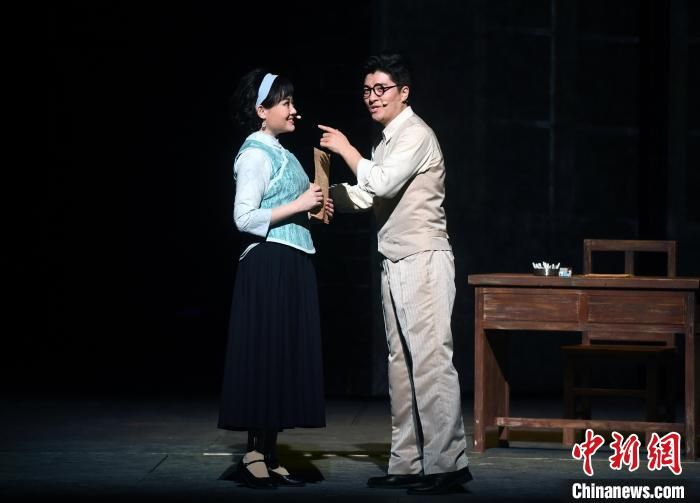 在剧中,青年男高音歌唱家黄训国(前右)饰演瞿秋白,著名女高音歌唱家王庆爽(前左)饰演杨之华。 记者刘可耕 摄