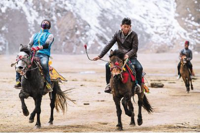 桃花节期间的赛马比赛。