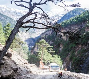 这里是林区,现在的森林覆盖率在97%以上,历史上这里的人大多以狩猎为生,被卫藏地区的人视为蛮荒之地。这里有莲花生大师、有“伏藏”的种种神奇的传说。从那曲到嘉黎县,还是羌塘草原的地貌,从县城到尼屋乡,海拔高度陡降千米,进入高山峡谷地带。树越走越高,林越走越密。穿越颠簸的嘉玉公路,偶尔可以看到猴子、马鹿;一路上可以看到电力工人在架设输电塔,一直走,就到了桃花盛开的地方。