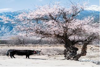 牦牛与桃花。