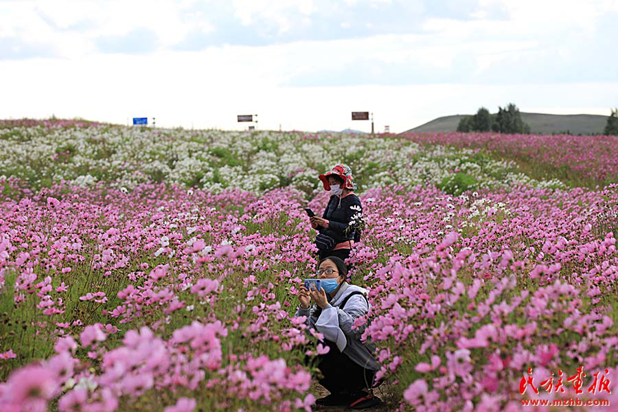 村北侧靠近国道的一片花海吸引游客驻足拍照。