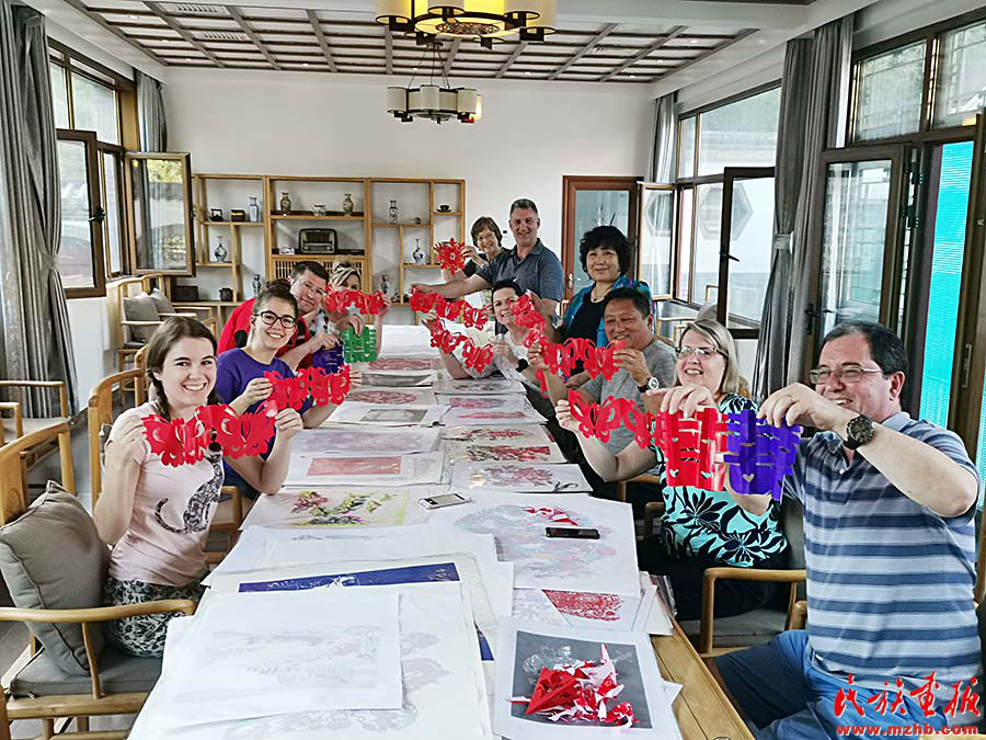 外国友人体验丰宁剪纸。(石俊凤 供图)