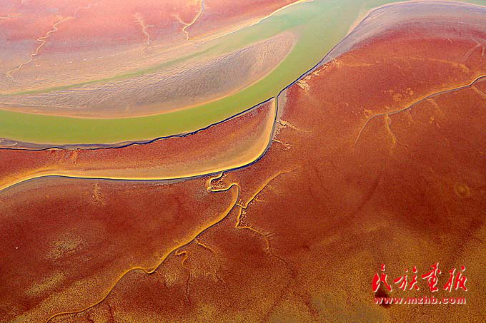 鸟瞰黄河三角洲。(侯贺良 摄影)