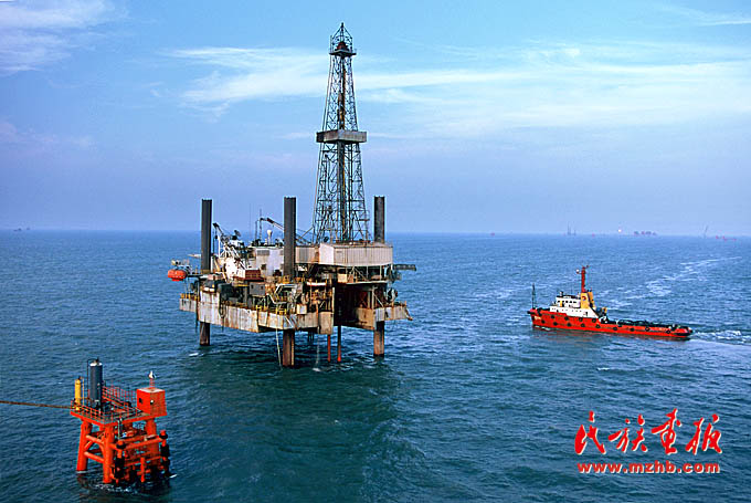 胜利油田的海上钻井平台。(侯贺良 摄影)