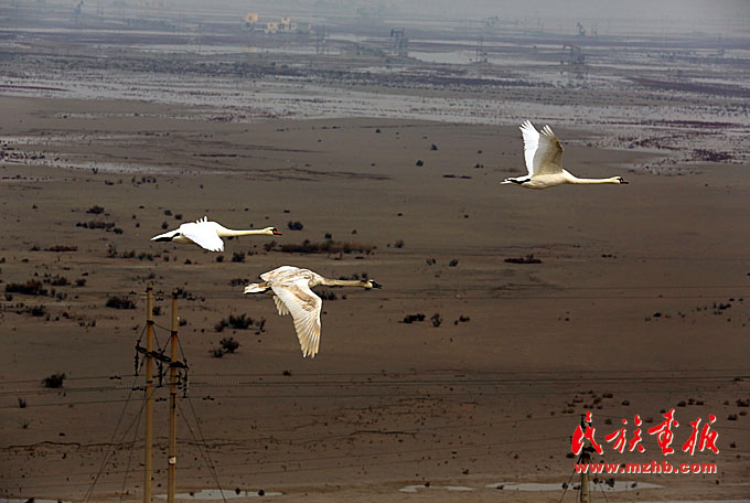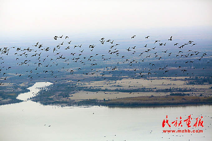 黄河三角洲湿地百鸟翔集。(侯贺良 摄影)