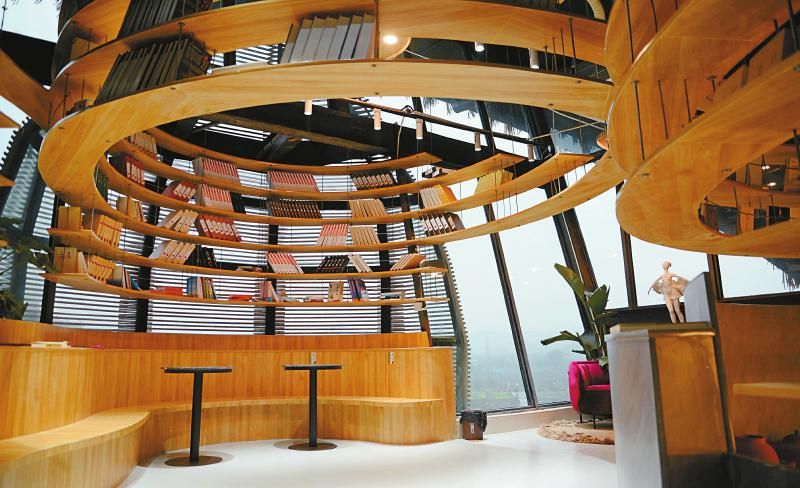 邹斯维将此形容为“外粗内细”,“我们在建筑外形上突出乡野气息,在内部植入现代设计,注重将开敞和封闭空间相结合,图书馆每一层都构造了观光平台,打造成最佳观光点位。”