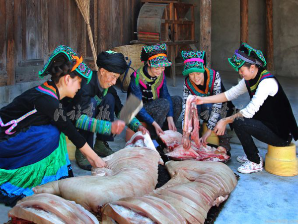 “觉罗基”时全家团聚,或杀猪、杀鸡,庆贺当年人丁兴旺、来年吉祥安康。