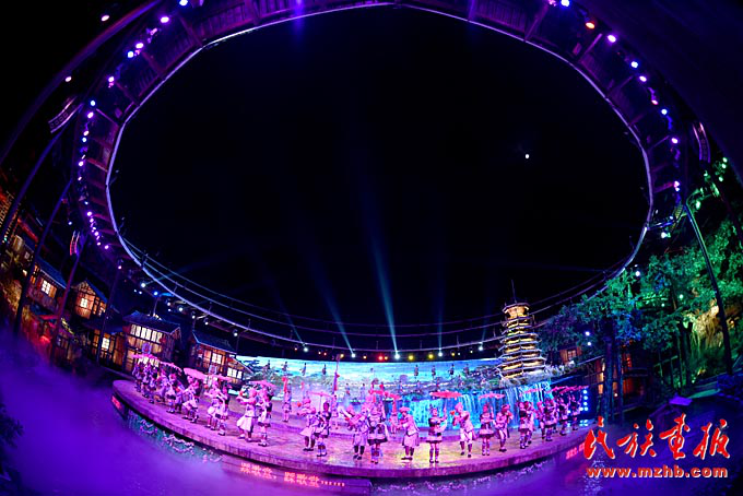 进入县城,宽敞的公路上车并不多,远处的风雨桥和鼓楼一下就能让人知道这里是侗族地区。入住酒店,大堂和房间里都有侗族风情大型实景演出《坐妹》的宣传单。据演出负责人杨兵仁介绍,这台节目经过多次改造已经成为三江的文化品牌。演出将侗族地区丰富多彩的传统文化元素,如婚恋、服饰、民族歌舞等与国内顶级舞美及现代声光科技相结合,再加上那动人心弦的天籁之音,让观众耳目大醉,心旷神怡,流连忘返。杨兵仁介绍说:“《坐妹》演出安置专、兼职演员140多人,其中专职演员有一半多。这部分人已经成为侗族民族歌舞的传承者,他们的平均年收入都在3万多元。我们现在正在打造的斗牛场的经营模式是想让广大群众参与进来,真正做到人人参与,人人获益。”