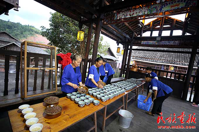 一场演出、一座茶山、一个寨子、一场百家宴、一道油茶、一幅农民画、一件服饰,像一颗颗珍珠,闪耀在侗乡的山水间,处处是民族文化的符号和气息,不但丰富了人们的精神世界,而且增加了当地百姓的经济收入。