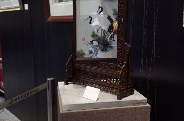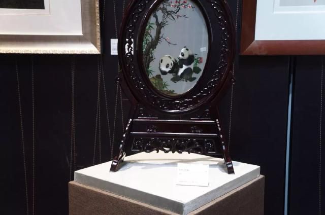在“巴蜀工匠·非遗绣专题展”上,小编欣赏到蜀绣国家级非遗传承人郝淑萍大师的弟子陈晓丹的创新作品。她的作品《相思鸟——熊猫》属于双面异形异色异样绣,这幅绣品是把大熊猫和相思鸟有机结合而创作的,采用桑蚕丝线,一针一线绣出,颜色过渡自然,层次鲜明,生动且富有灵气。据说,这幅作品耗时整整1年,汇聚了陈晓丹30年来全部作品的努力。
