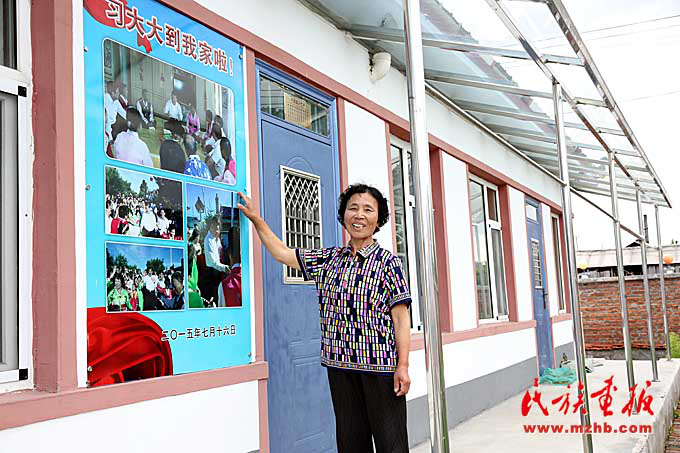 吉林省和龙市东城镇光东村村民孙顺玉介绍2015年习近平总书记在她家做客时的照片。(民族画报记者 李玉花 摄影)