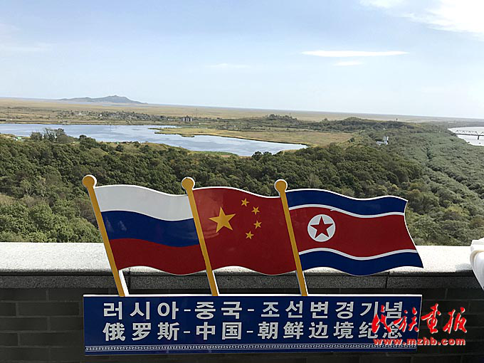 防川龙虎楼上远望俄罗斯—中国—朝鲜边境。(民族画报记者陈涛 摄影)