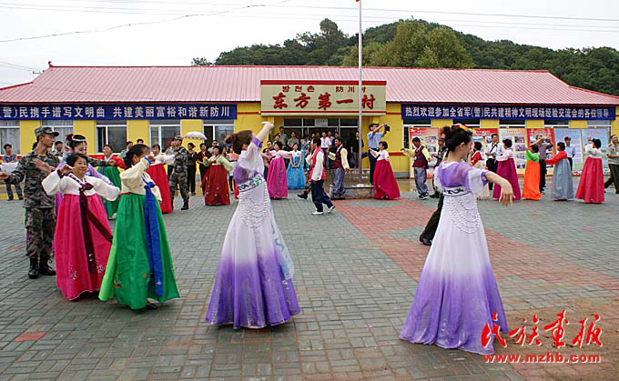 珲春市敬信镇防川村朝鲜族民俗休闲娱乐广场上的表演活动丰富多彩。