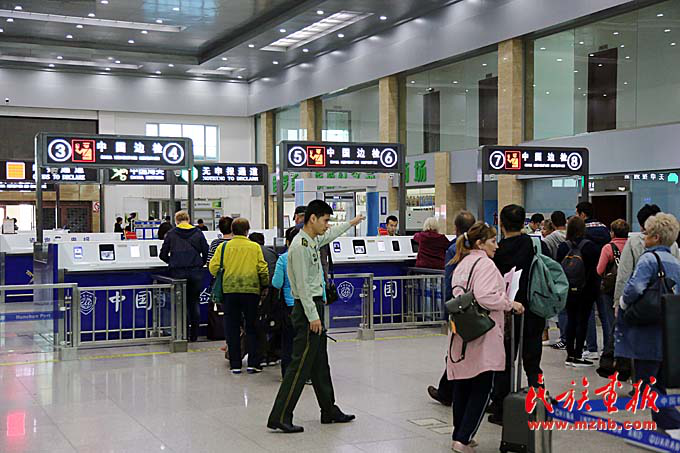 俄罗斯旅游团正在珲春口岸通关。(民族画报记者 陈涛 摄影)