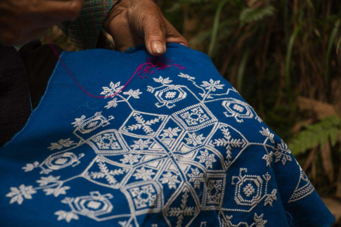 改毛村的苗族妇女们还保留有刺绣的传统,农闲时妇女们总会相约坐在一起,拿出针线相互之间交流一番。时而专心致志,时而和伙伴们闲聊拉拉家常,画面和谐而且温情。以前刺绣大多是为了彰显勤劳,现在刺绣更多是为了传承文化和增进人们之间的情感。