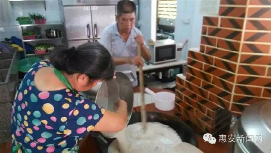 时至今日,“乾薯粉”已成为诸多中年人怀旧的化身。寻访许久,终于在位于螺城镇政府大门斜对面的“田岸边美食馆”,再次看到这道惠安本土菜的制作全过程,重温了这种外地所没有的“惠安味道”。
