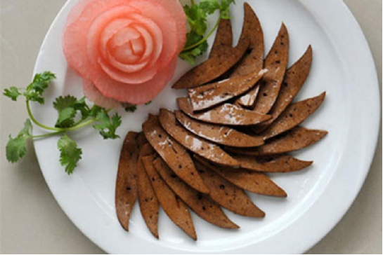 武平猪胆干色泽紫褐,香而微甜,是宴席冷盘名菜。它含有多种糖类和维生素等营养成份,具有生津健胃,清凉解毒的功效。吃时,只要将它蒸熟,趁热搽上一层芝麻油,待冷后切成薄片再拌少许蒜片,便香气四溢,韵味无穷。当地人常将它作为宴请宾朋和馈赠亲友的佳品。港澳同胞和海外侨胞尤其喜欢这种家乡风味。