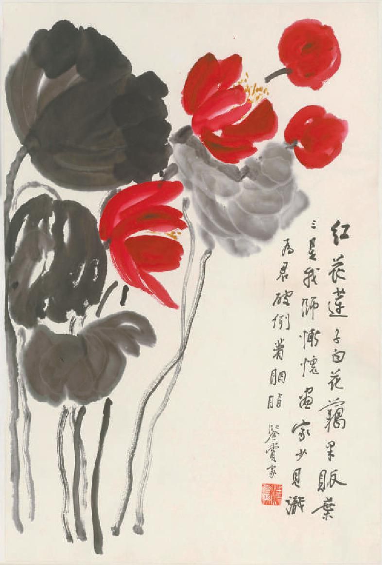 题款:红花莲子白花藕,果贩叶三是我师。惭愧画家少见识,为君破例著胭脂。