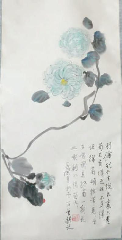 题款:别伦·别尔生说花里只有菊花有绿色的,不见得,但绿菊确较常见。曾在家乡见绿菊一盆,花如喫面的汤盆大!一九九六年初冬汪曾祺记。